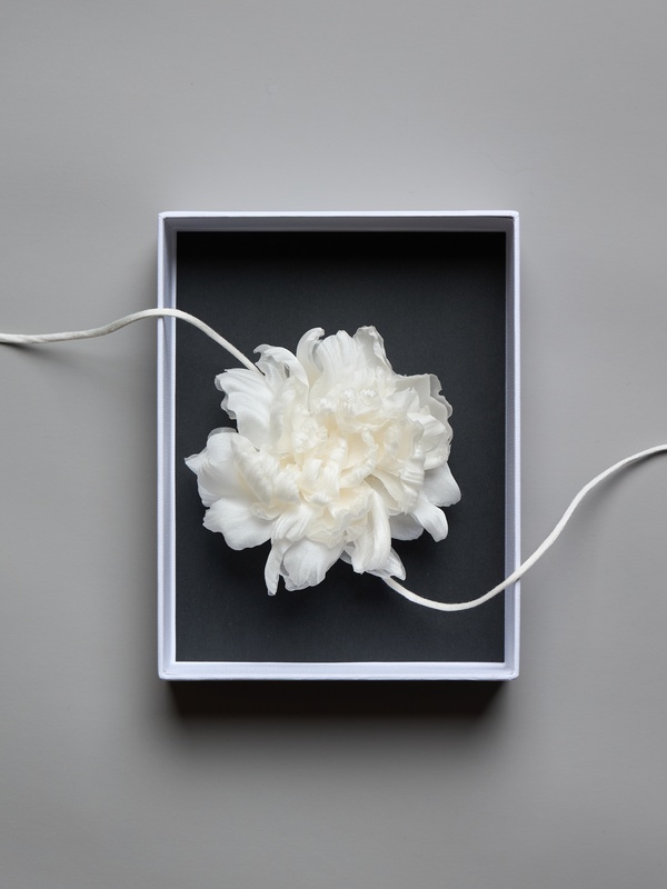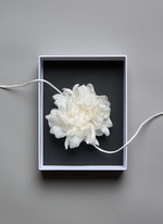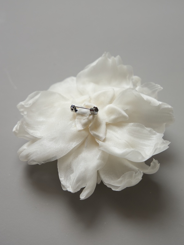 Шелковый пион ручной работы. Имеет 2 крепления сзади. Английская булавка для крепления на одежде, а также шнурок, для того, чтобы носить цветок на шее.