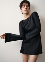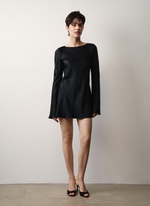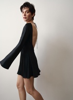 Платье с удлиненными расклешенными рукавами, элегантно демонстрирующее хрупкую спину.