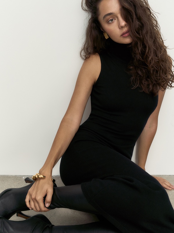 Уютное платье из шерсти и кашемира. Сдержанное на первый взгляд, но с интригующей деталью для сногсшибательного эффекта.