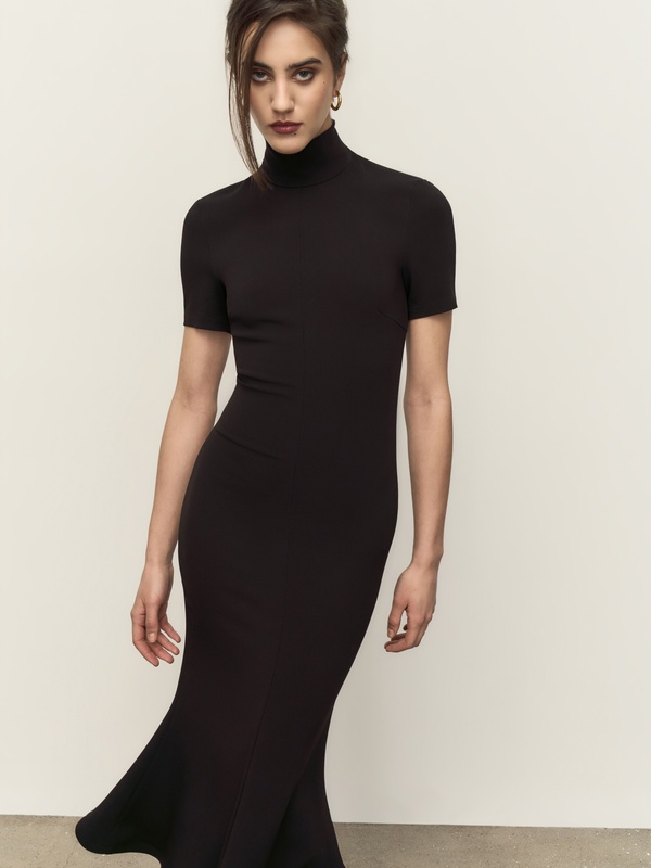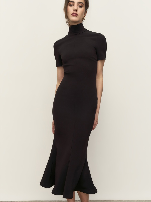 Силуэтное женственное платье с мягкими воланами на подоле, которые нежно подчеркивают каждое ваше движение.