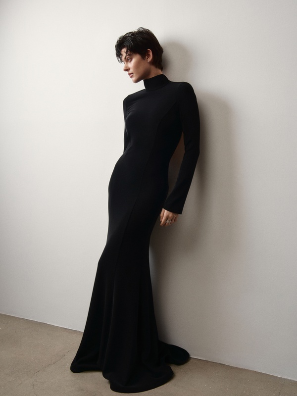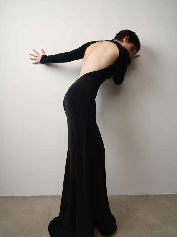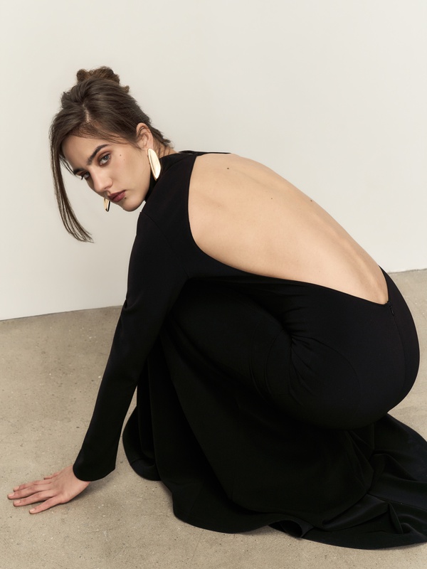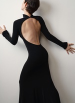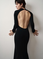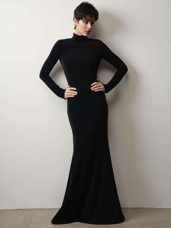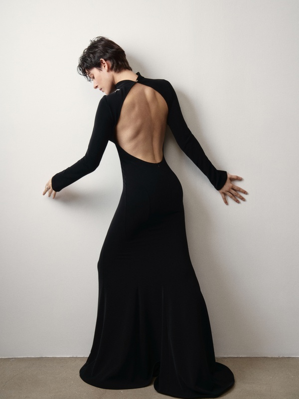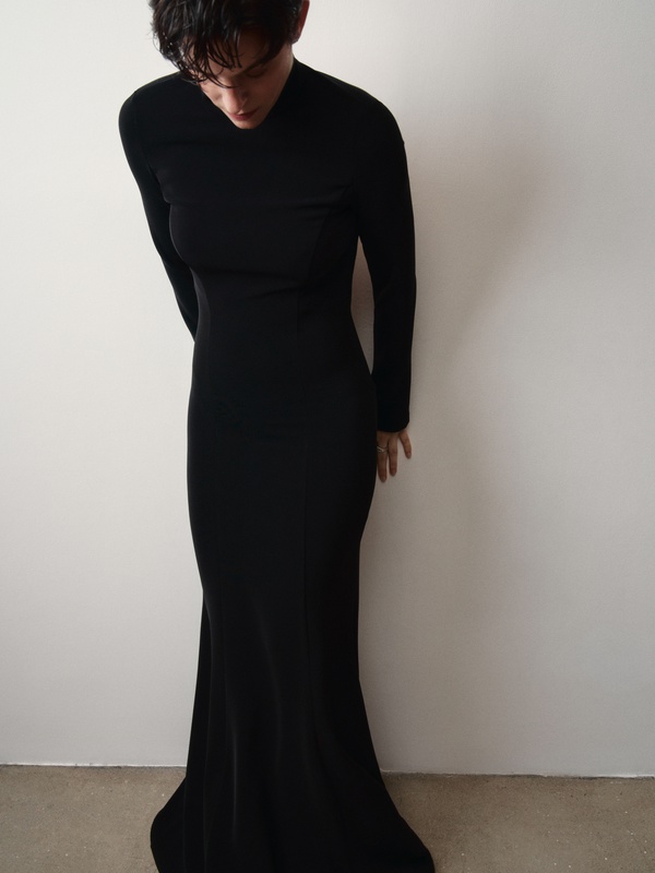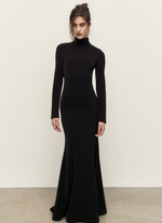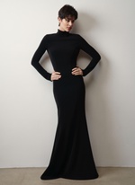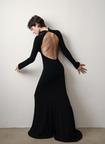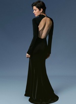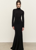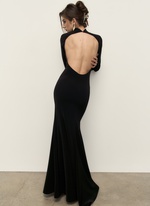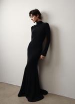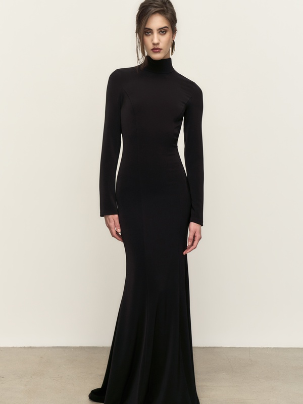 Элегантое платье в пол со шлейфом и манящим вырезом на спине. Выполнено из технологичной немнущейся ткани.