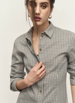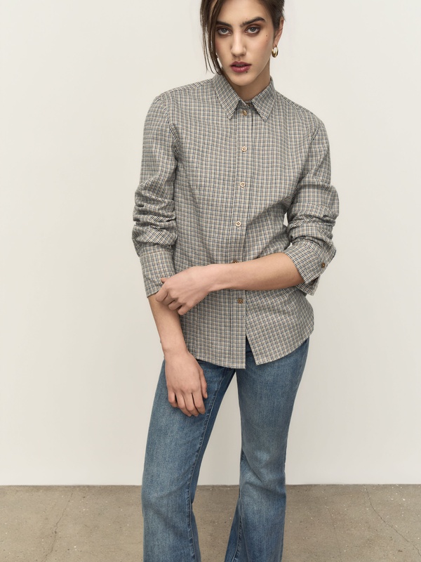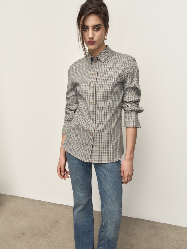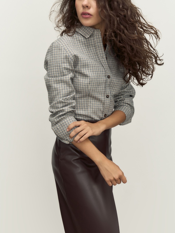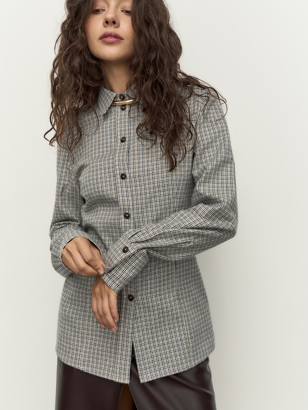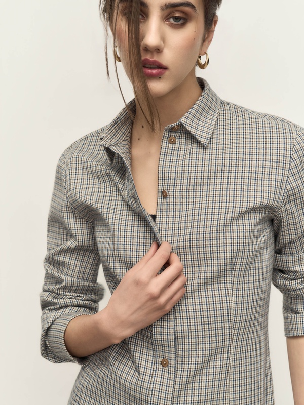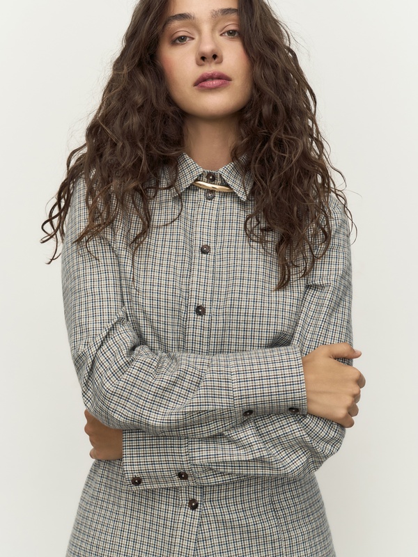 Приталенная рубашка в клетку из плотного мягкого хлопка. Сочетается как со всеми бежево-коричневыми оттенками, так и с синим денимом.