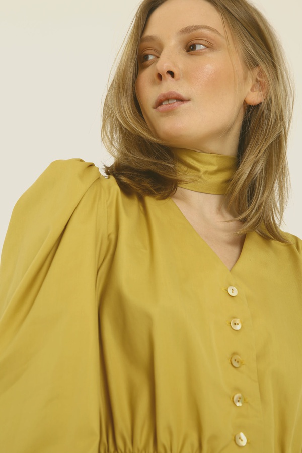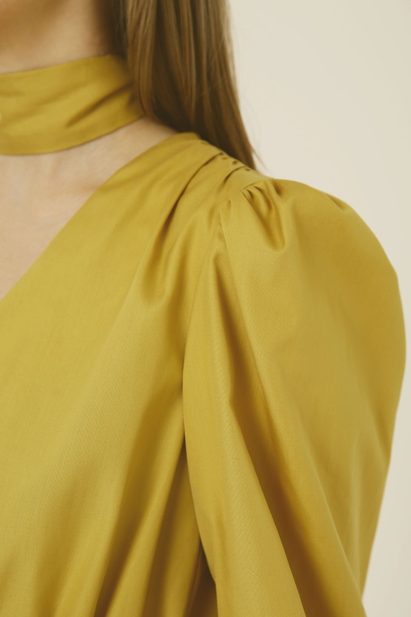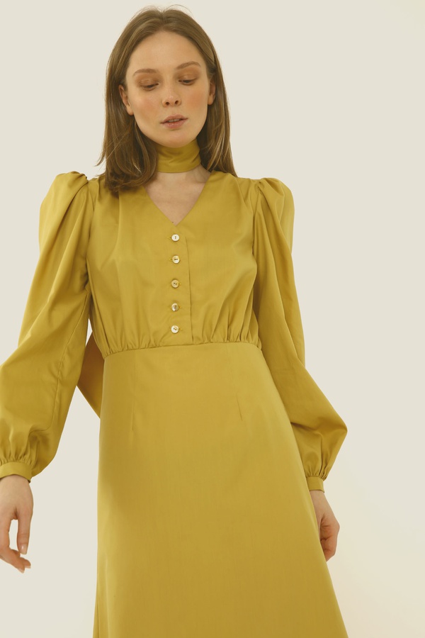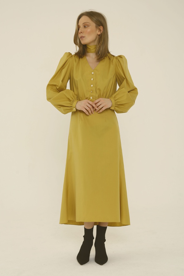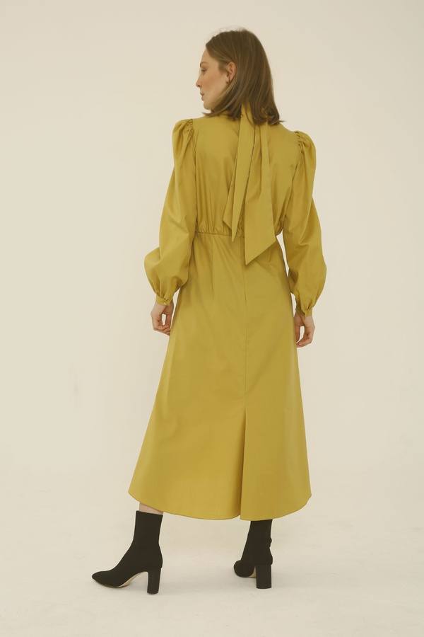 Платье миди с асимметричной юбкой, горчичное
