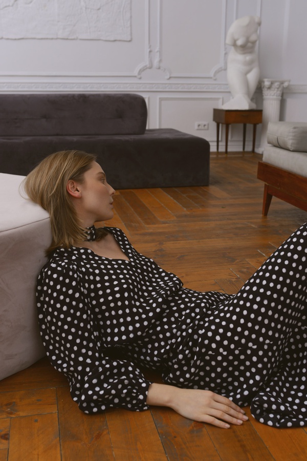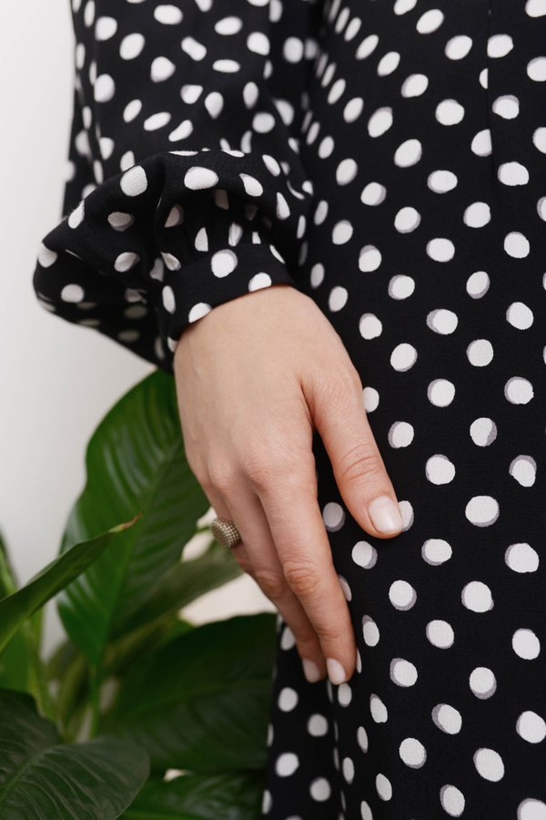 Платье с V вырезом в горошек, черное