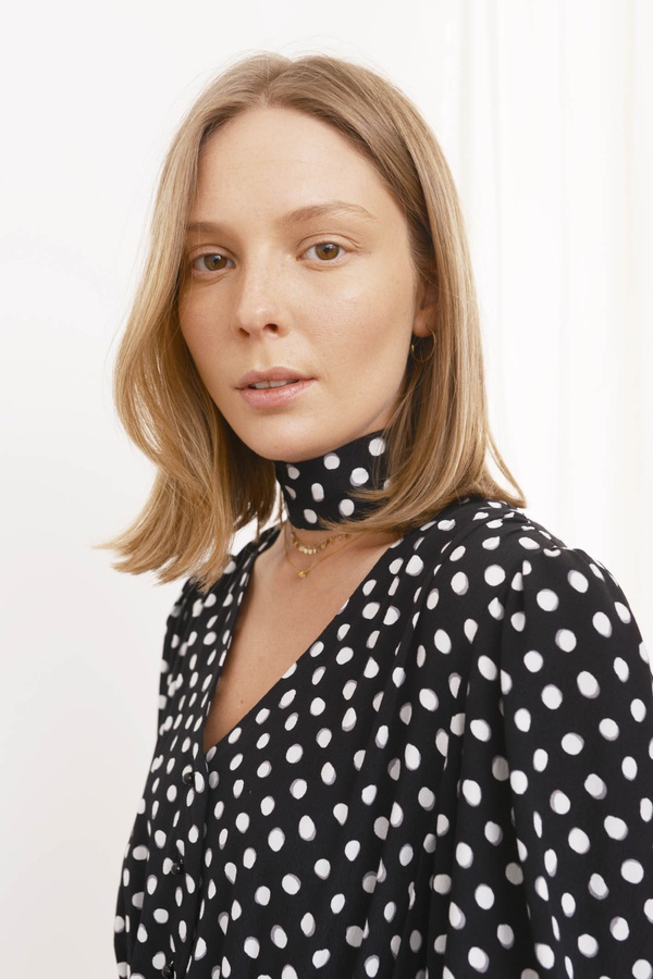 Блуза с лентами, черно-белая