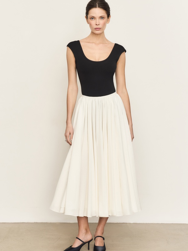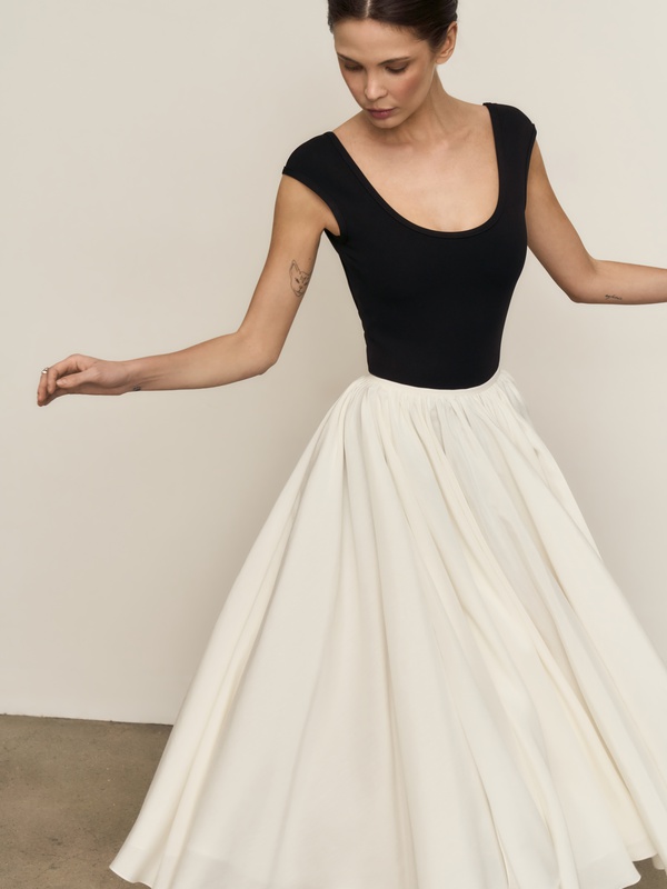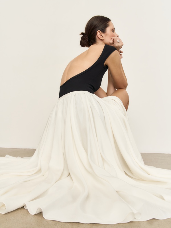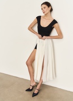 Роскошная юбка современной принцессы. Выполнена из 14 метров натурального шелка с двумя высокими симметричными разрезами. Просто необходима для того, чтобы подарить себе ощущение праздника. Перевыпустили юбку в новой версии из более фактурного шелка.
