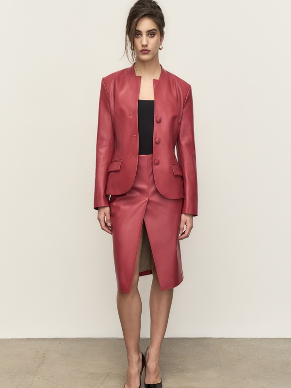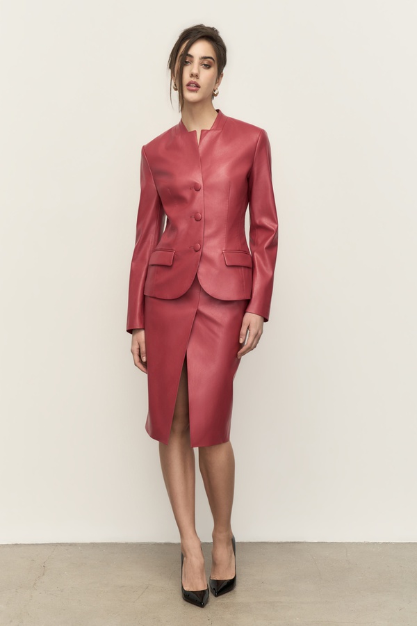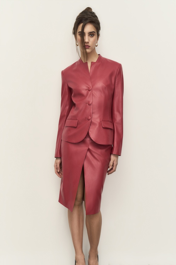 Классическая форма юбки, дополненная интеллигентным разрезом.