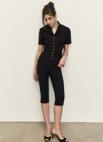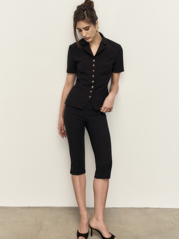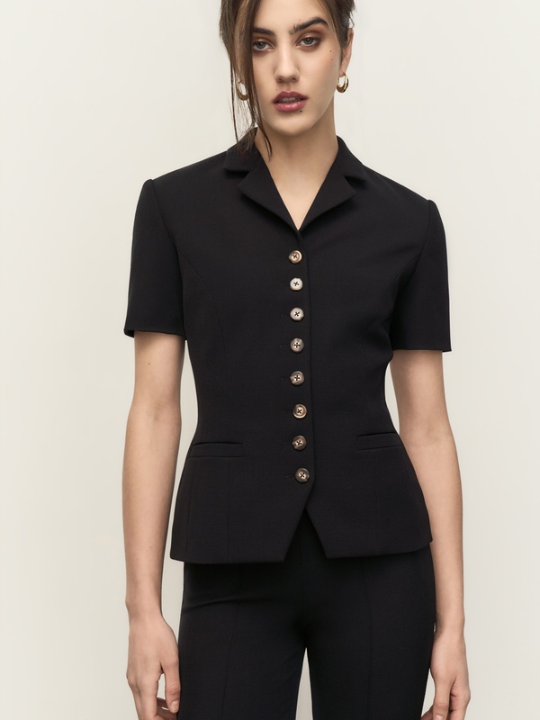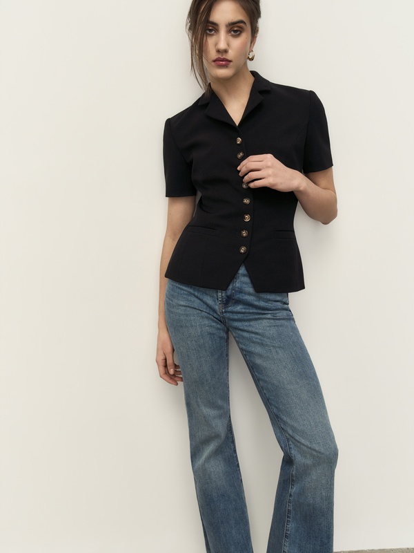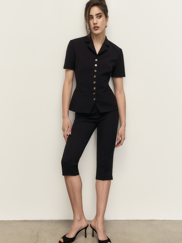Безупречный жакет с коротким рукавом из плотной эластичной ткани Balenciaga. Носим в комплекте с бриджами Patricia или же с вашими любимыми джинсами.
